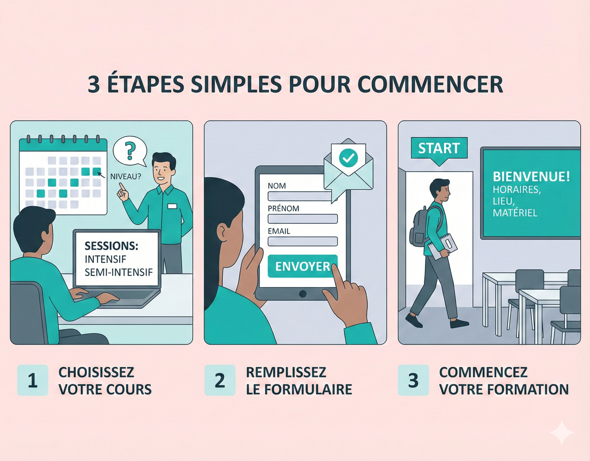 Consultez nos sessions disponibles (intensif ou semi-intensif).